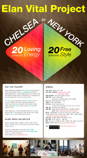세계 미술의 중심, 뉴욕의 첼시에서 2010년 겨울을 수놓은 Elan Vital Project를 참여할 분을 기다립니다.