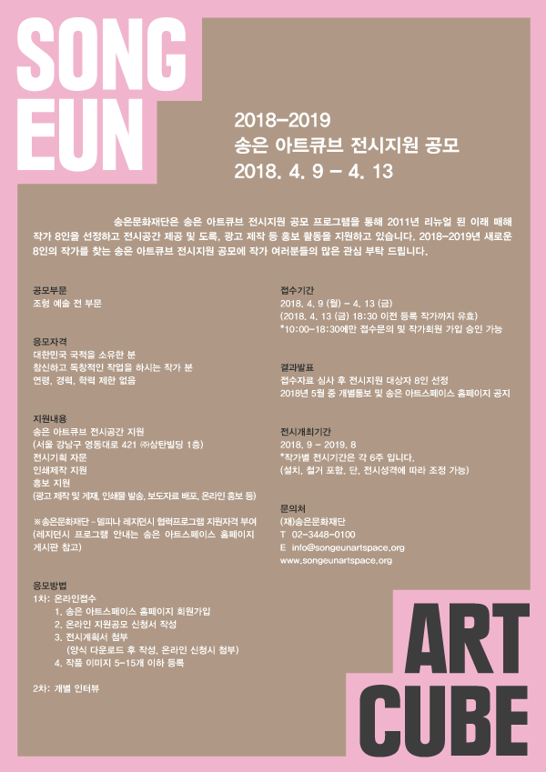 2018-2019 송은 아트큐브 전시지원 공모 4/9-4/13