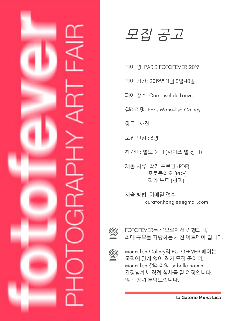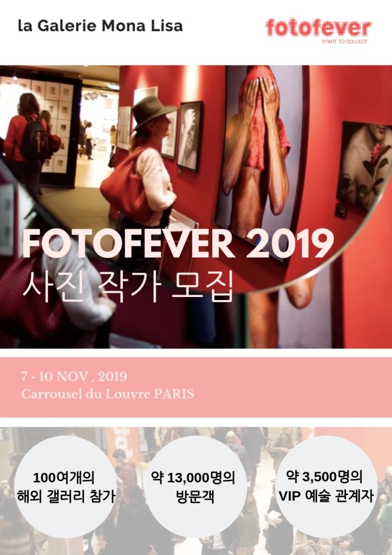 파리 Mona-lisa Gallery 에서 2019 FOTOFEVER 파리 사진 페어에 참가 할 작가를 모집하고 있습니다.