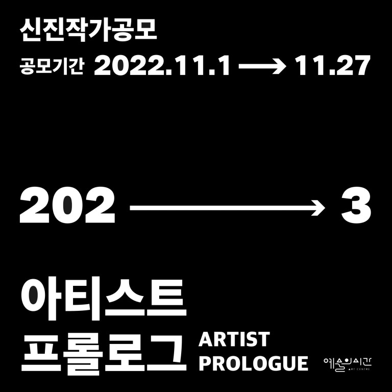 아트센터 예술의 시간은 연례전시로 2023년 상반기 개최하는 <아티스트 프롤로그 2023>에 참여할 작가를 공모합니다.
