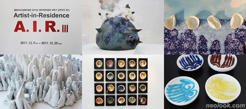 ■ Artist-in-Residence : A. I. R. III□ Exhibition Dates / Dec. 9, 2011 ▶ Dec. 25, 2011□ Exhibition Venue / Clayarch Gimhae Museum□ Artist / KIM Younghyun_KIM Changhyun_Catherine DAZE_Denise SMITH_LEE Taxoo 『Artist-in-Residence: A.I.R.III』 is an exhibition displaying work by five resident artists of the Clayarch Gimhae Museum Ceramic Creative Center, working there for the second half of 2011 from September. The artists explore new methods of producing ceramics, and its potential, as an extension