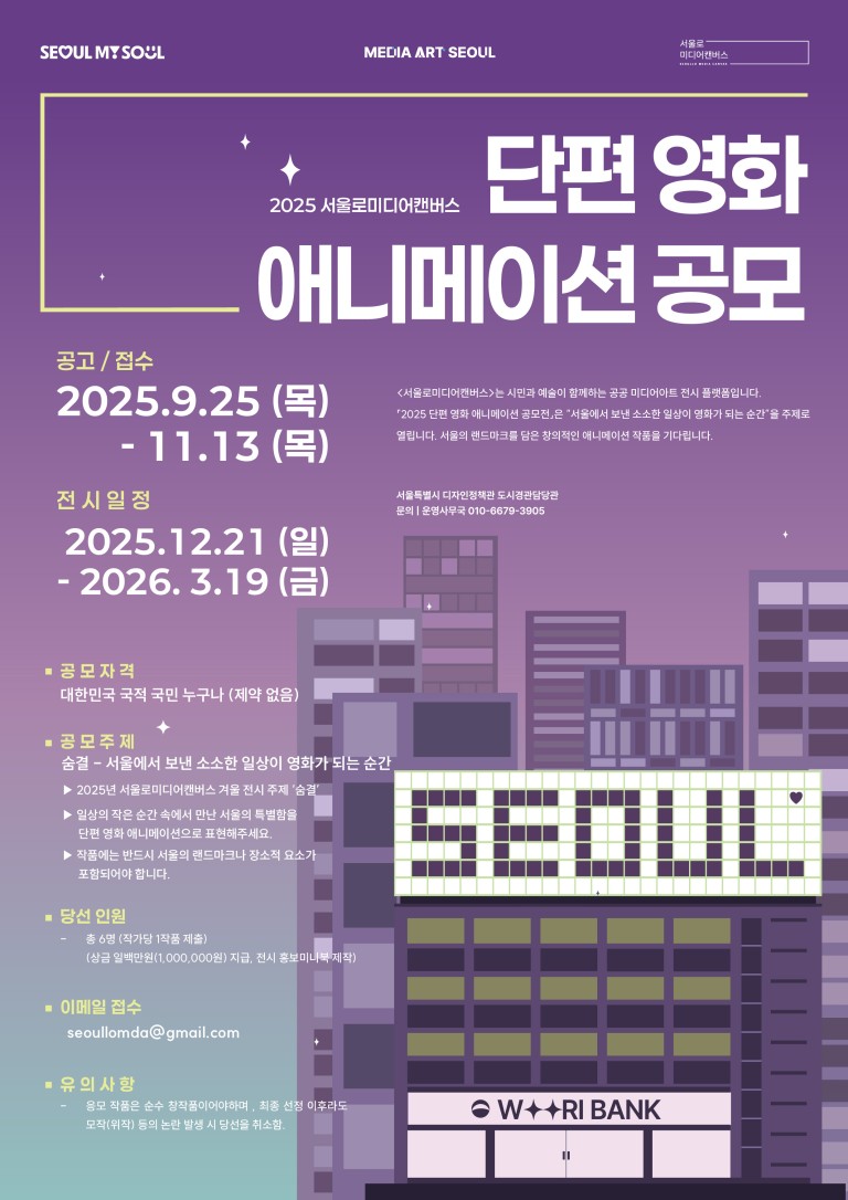 ○ 공 모 명 : 2025 서울로미디어캔버스 단편 영화 애니메이션 공모