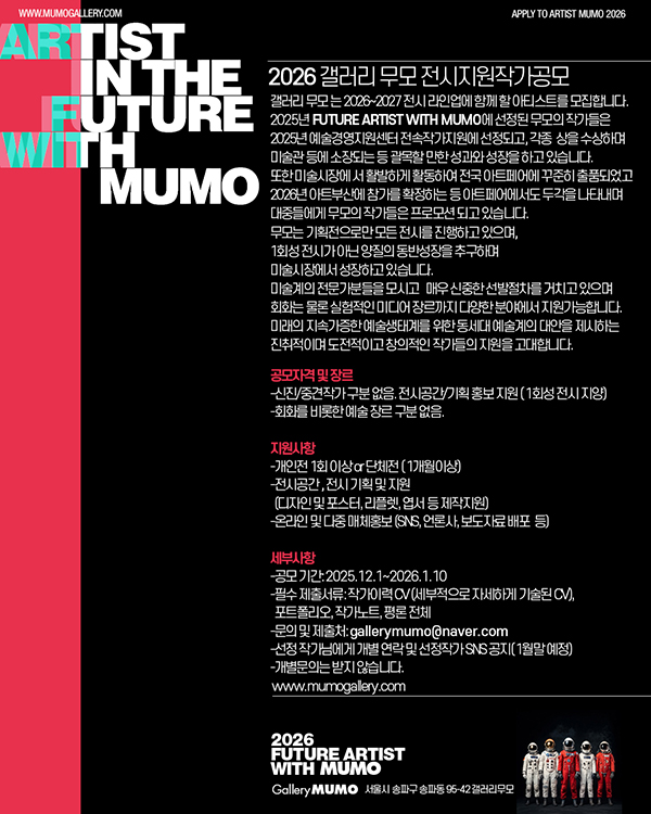 [2026 갤러리무모 GalleryMUMO 전시작가공모] ‘ARTIST IN THE FUTURE WITH MUMO’
