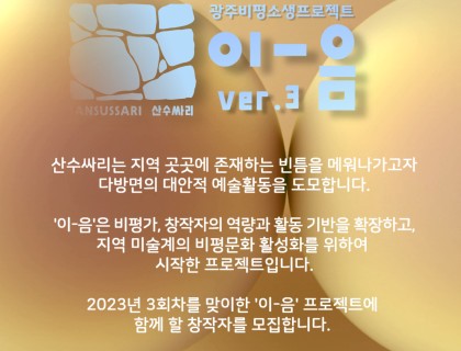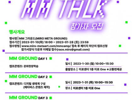안녕하세요.광주 미로센터에서 열리는 디지털 아트 오픈랩 <마이크로 랩 3.0>를 안내해드립니다.예술가 및 융복합 예술에 관심있는 분들의 많은 참여 부탁드립니다.● 미로 렉처 | 2023년 11월 18일 오후 1시-4시 강연자 | 룹앤테일, 오주영, 허대찬● 마이크로 랩 3.0(오픈랩) | 2023년 11월 18일 - 12월 1일(하단 세부일정 참고) 참여작가 | 로그( ), 룹앤테일, 방앤리, 배준형, 전혜주, 최영준×박진현, 코뮤스트, 바실리 수민(Vasiliy …
