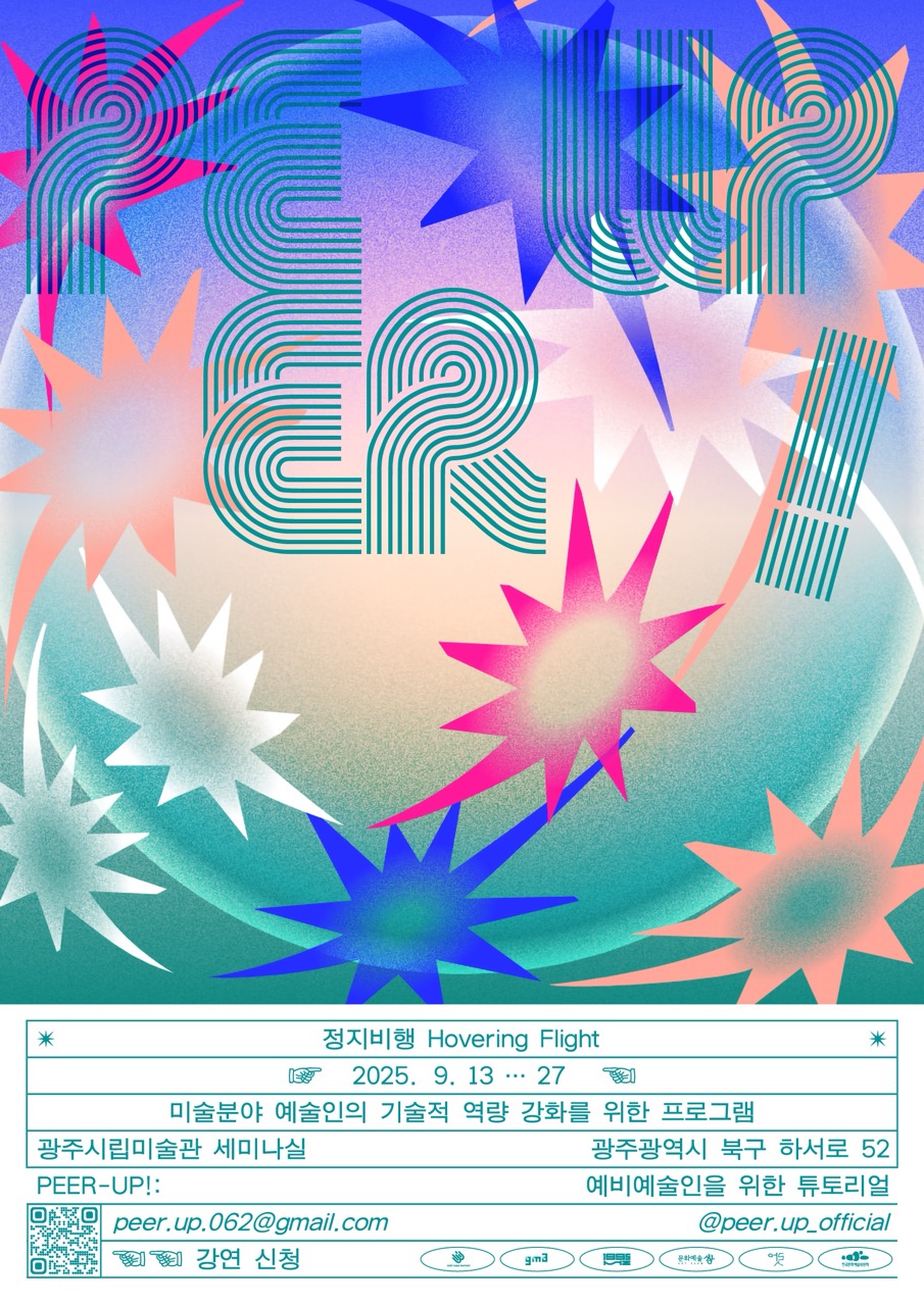 광주·전남·전북 지역의 예비예술인을 대상으로 진행하는 2025년 [PEER-UP!: 예비예술인을 위한 튜토리얼]의 연계 강연 [정지비행]을 개최합니다.