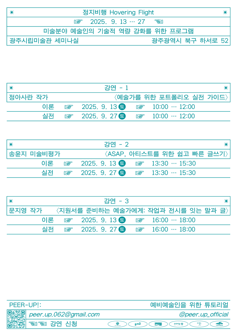 2025년 [PEER-UP!: 예비예술인을 위한 튜토리얼] 연계 강연 [정지비행 Hovering Flight] 안내