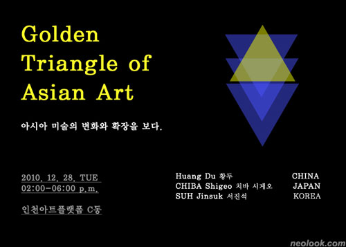인천아트플랫폼은 국내외 예술계 인사들을 초청하여 현재 미술계의 흐름을 사회적, 미학적 맥락에서 살펴보는 강연회 및 학술프로그램을 마련하고 있습니다. 올해를 마감하며 인천아트플랫폼은 아시아 미술을 대표하는 한중일 3국의 주요 큐레이터, 평론가를 초청하여 2010년 아시아 미술계 현재의 모습과 그 의미를 짚어보고자 합니다. 이번 강연회에는 중국의 큐레이터 황두, 일본의 평론가 겸 큐레이터 치바 시게오, 한국의 큐레이터 서진석 등이 강연자로 참여합니다. 이들은 각각 자신이 근거지를 두고 있는 국가를 중심으로 2010년 아시아 미술의 흐름과 방향을 사회적 환경 및 예술계의 흐름과 연결하여 들려줍니다. 일반인 및 인천아트플랫폼 레지던시 입주작가들을 대상으로 한 이번 강연회는 세계미술 속에서 아시아 예술의 현재를 보다 넓은 시각에서 읽고 미래를 가늠하는 기회가 될 것입니다. 관심있는 여러분들의 많은 참석 부탁드립니다. ■ 인천아트플랫폼