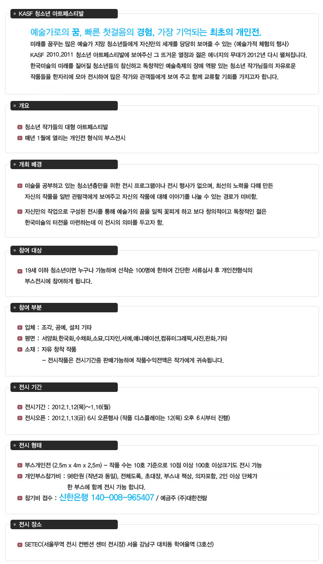 2012 청소년 아트페스티발 페이지 정보 작성자 art 조회 6,993회 작성일 12-01-10 07:07 본문 추천 0 목록 이전글 2012 인사동 한국미술관 초청 (낭중지추) 12.01.14 다음글 큐레이터와 함께하는 전시워크숍 (작가,기획자,컬렉터) 12.01.10 art님의 행사/세미나 관련글 행사/세미나 더보기 H 인기글 서울마이소울굿즈샵 팝업스토어 [풍납근린공원] 10-31 H 인기글 2012 인사동 한국미술관 초청 (낭중지추) 01-14 H 인기글 큐레이터와 함께하는 전시워크숍 (작가,기획자,컬렉터) 01-10 H 인기글 오늘, 또 다른 이 날 미술, 수원에서 길 찾기展 세미… 01-07 H 인기글 아트베이징 파티 인 서울 01-07 H 인기글 [아트센터 나비/개막행사] 대한민국 미디어아트 <육감맛… 11-12 H 인기글 서울아트페스티벌 개최 안내 / 2011. 07. 22… 06-10 H 인기글 한국현대미술의 해외진출_전개와 위상 05-25 H 인기글 2011 제 7회 광화문국제아트페스티벌 / 2011. … 05-25 H 인기글 디자인 45℃(Design 45℃reative) / 제… 01-06