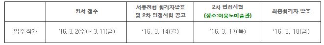 · 최종발표 : 2016년 3월 18일 개별 및 홈페이지 공고