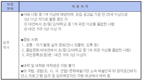 신청자격 증빙자료(주민등록등(초)본, 졸업증명서, 작가 활동 실적 증빙 자료)
