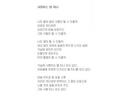 마음 어두운 밤 깊을 수록우러러 쳐다보면 반짝이는 그 맑은 눈빛으로나를 씻어 길을 비추어 주는그런 사람 하나 갖고 싶다. 대구비만S라인주사 지분담보대출 K스탁론 바로가기