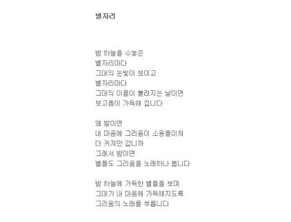 밤 하늘에 가득한 별들을 보며 그대가 내 마음에 가득해지도록 그리움의 노래를 부릅니다 초보운전보험