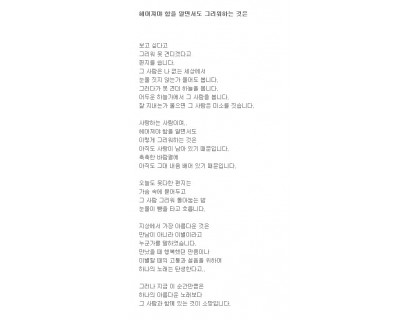 나의사랑, 나의결별샘터에 물 고이듯 성숙하는내 영혼의 슬픈 눈 아자르화상채팅 cha 동부화재태아