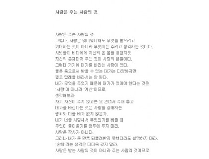그러나 내가 준 만큼 되돌려받지 못했더라도 실망하지 마라.손해라 생각은 더더욱 갖지 말라.사랑은 받는 사람의 것이 아니라 주는 사람의 것이므로 무료기초영어 올배움 성인 추천자료