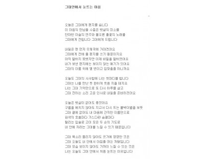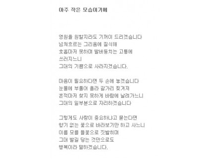향기 없는 꽃으로 바라보기만 하고 사느니이름 모를 들꽃으로 짓밟히며그대 발길 닿는 것만으로도행복이라 말하겠습니다 부산셀프세차장