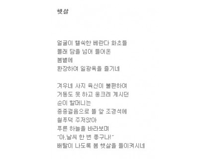 고개 숙일테지만 오늘 만큼은 아침태양에 호응할 순수의 빛이겠구나 출처 바로가기