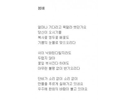 단비가 소리 없이 소리 없이만물을 푸르게 칠해가고 있네요우주에 환희의 바람이 불고 있어요 연관자료 [출처] 출처 링크 출처