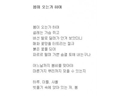 어느날까지 봄비를 맞아야마른가지 뿌리까지 젖을 수 있는지하루, 이틀, 사흘빗줄기 속에 앉아 있는 저, 봄 화상 채팅앱 랜덤화상채팅 무료영상채팅 화상통화 무료화상통화 영상채팅 바바 랜덤영상채팅 랜덤화상채팅 비디오채팅앱 랜덤화상채팅 빅뱅 화상채팅어플 영상채팅