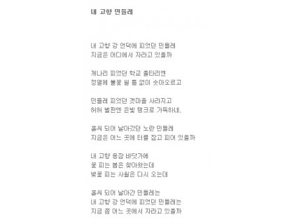 홀씨 되어 날아간 민들레는내 고향 강 언덕에 피었던 민들레는지금 쯤 어느 곳에서 자라고 있을까 화상 통화 앱