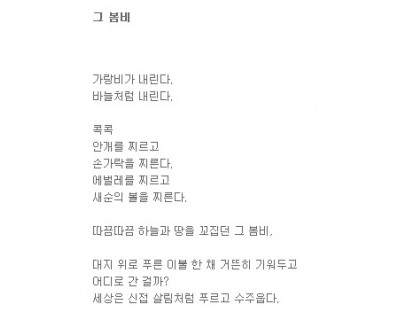 양지쪽에 나와 종알거리는데 바람은 살포시 다가와 쓰다듬고 볕은 모두를 보듬는구나 출처