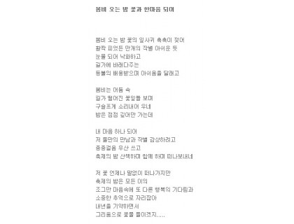 마음도 푸르게 사랑나무를 심자 산에는 꽃피는 나무를가슴에는 향기로운 사랑 나무를바로가기