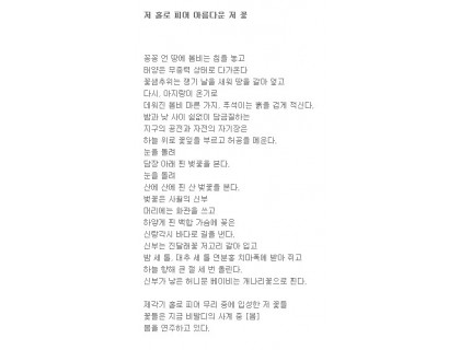 제각기 홀로 피어 무리 중에 입성한 저 꽃들 꽃들은 지금 비발디의 사계 중 [봄] 봄을 연주하고 있다. yapletv보기 어플