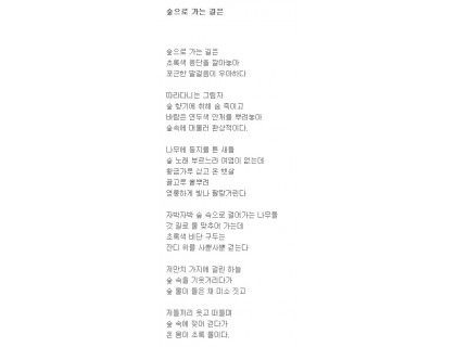숲 물이 들은 채 미소 짓고저들끼리 웃고 떠들며 숲 속에 젖어 걷다가 온 몸이 초록 물이다. 아자르영상채팅 영상아자르 랜덤영상앱 라이브채팅