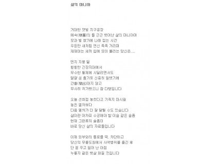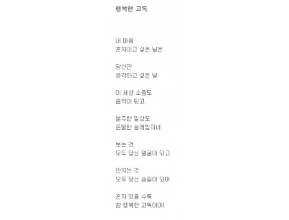 만지는 것 모두 당신 숨길이 되어혼자 있을 수록참 행복한 고독이여! 연결