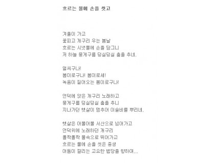 봄은어디에 있을까저기 강가에 수양버들의 보며봄을 그리네~
