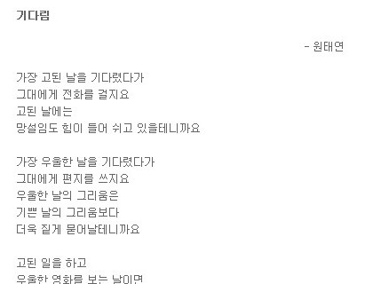 그대의 회답을 기다리지요우울한 영화를 보는 날이면눈물보다 더 슬픈 보고픔을 달래며 링크 출처 추천 링크1