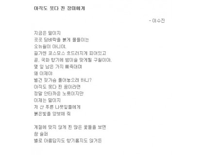 계절에 맞지 않게 핀 많은 꽃들을 보면참 슬퍼별로 아름답지도 향기롭지도 않거든링크 추천링크 바로가기