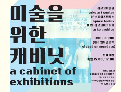 1974-2014 아르코미술관 특별전미술을 위한 캐비닛, 아카이브로 읽는 아르코미술관 40년아르코미술관이 건립 40주년을 맞이하여 기획한 특별전 은 미술회관 시대(1974년-2002년)부터 마로니에미술관 시대(2002년-2005년)를 거쳐 현재 아르코미술관 시대(2005년부터-현재)에 이르는 40년이라는 시간 동안 축적된 미술관 전시의 역사를 돌아본다. 이를 통해 우리는 한국 현대미술의 예술적 사건들을 재구성하고 문화적 창조물로서‘전시’에 대한 사유의 장을 마련하고자 한다.197…