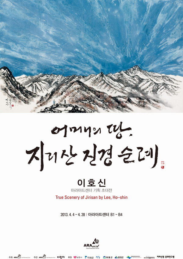 아라아트센터의 2013년 첫 번째 기획 초대전, 한국화가 이호신의 <어머니의 땅, 지리산 진경 순례>가 개최된다.