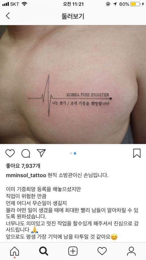 현직에서 근무하는 소방관이 나중에 자신이 어떻게 될지 몰라 가슴에 새긴 타투...
