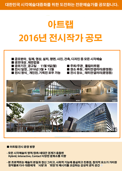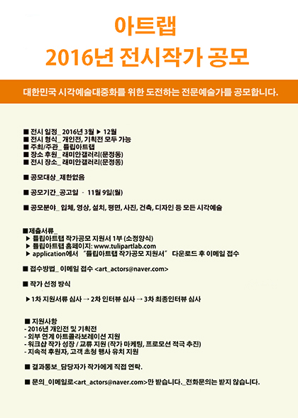 아트랩 2016년 전시작가 공모합니다.