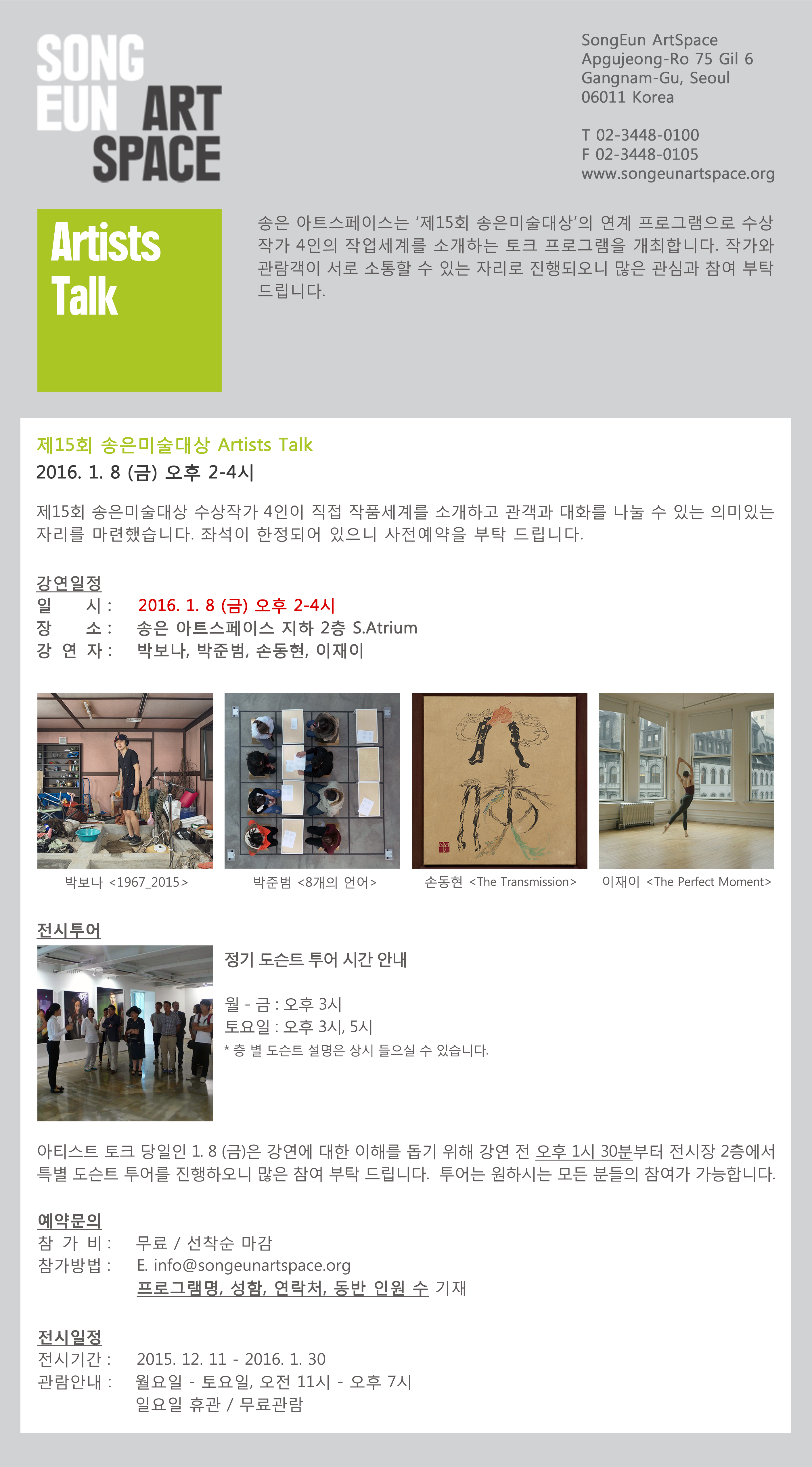 제15회 송은미술대상전_Artists Talk_2016/1/8(금) 2PM