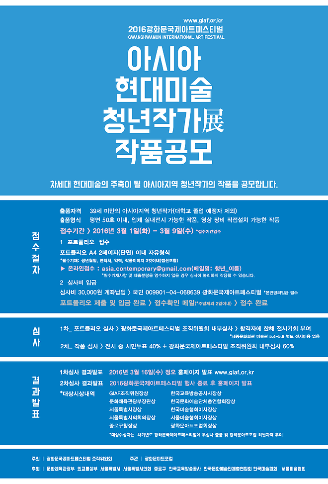 2016 광화문국제아트페스티벌에서 <아시아현대미술청년작가전>을 개최합니다.