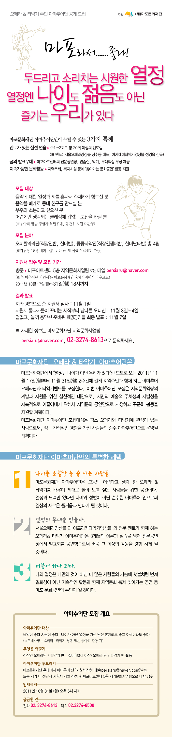 마포문화재단 오페라 & 타악기 아마추어단 동아리 모집합니다.