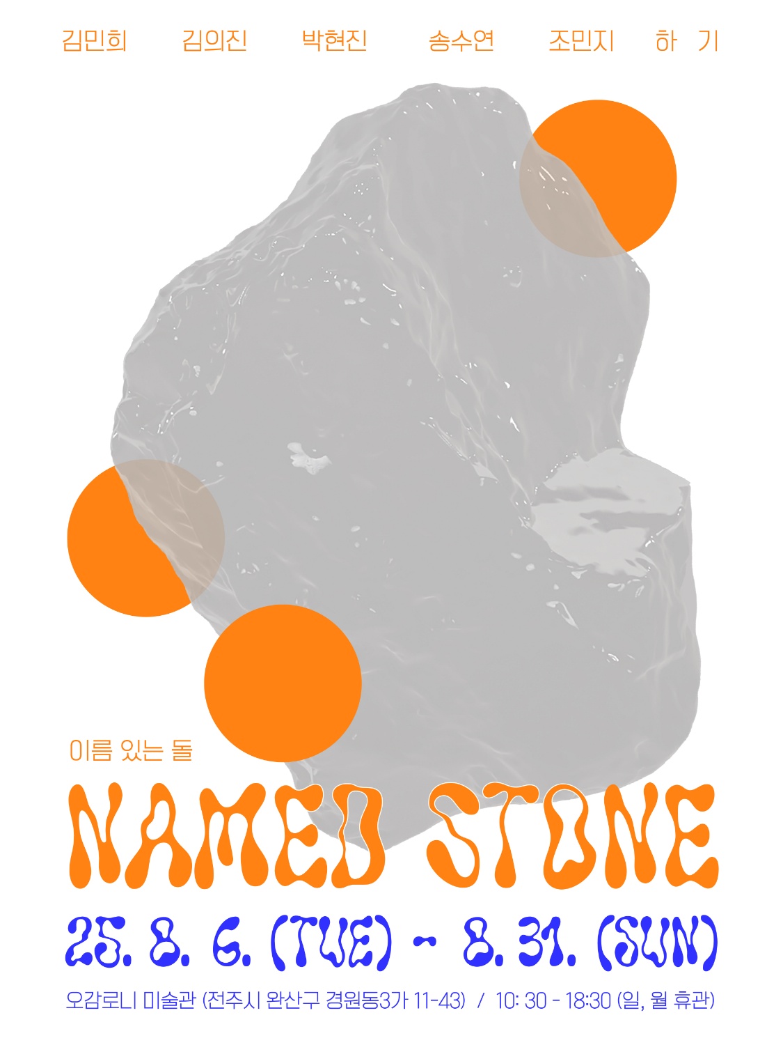 이름 있는 돌, 2025. 08. 06. - 08. 31., 오감로니 미술관, 전주, 김민희, 김의진, 박현진, 송수연, 조민지, 하기 작가
