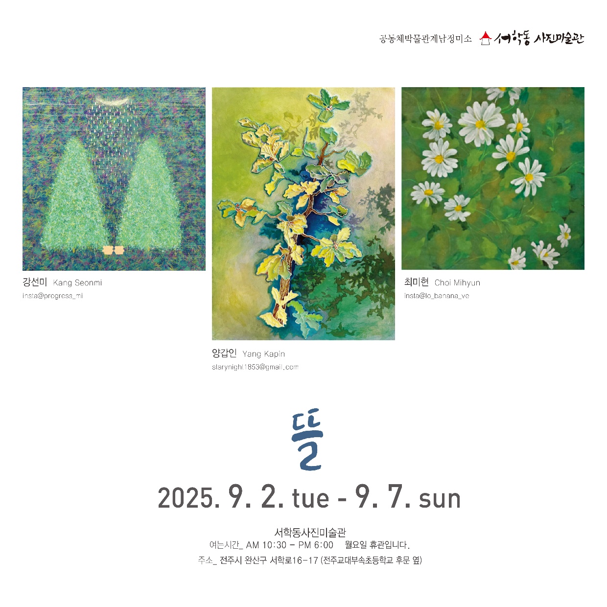 이번 전시는 그러한 뜰처럼, 서로 다른 개성과 표현이 모여 다채로운 울림을 만듭니다.
