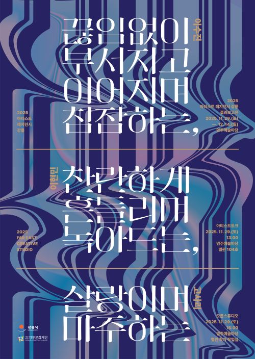 동해의 기후와 빛, 대관령을 넘나드는 바람, 관광도시의 일상과 로컬 커뮤니티의 리듬이 교차하는 이곳에서, 세 명의 입주 작가는 각기 다른 감각으로 도시를 탐색했고, 그 과정에서 강릉은 작업을 밀어 올리는 힘을 가진 예술적 현장이 되었다. 그 진동과 여운을, 한 해 동안 강릉에 머문 세 작가의 작업을 통해 가시화한 자리이다.