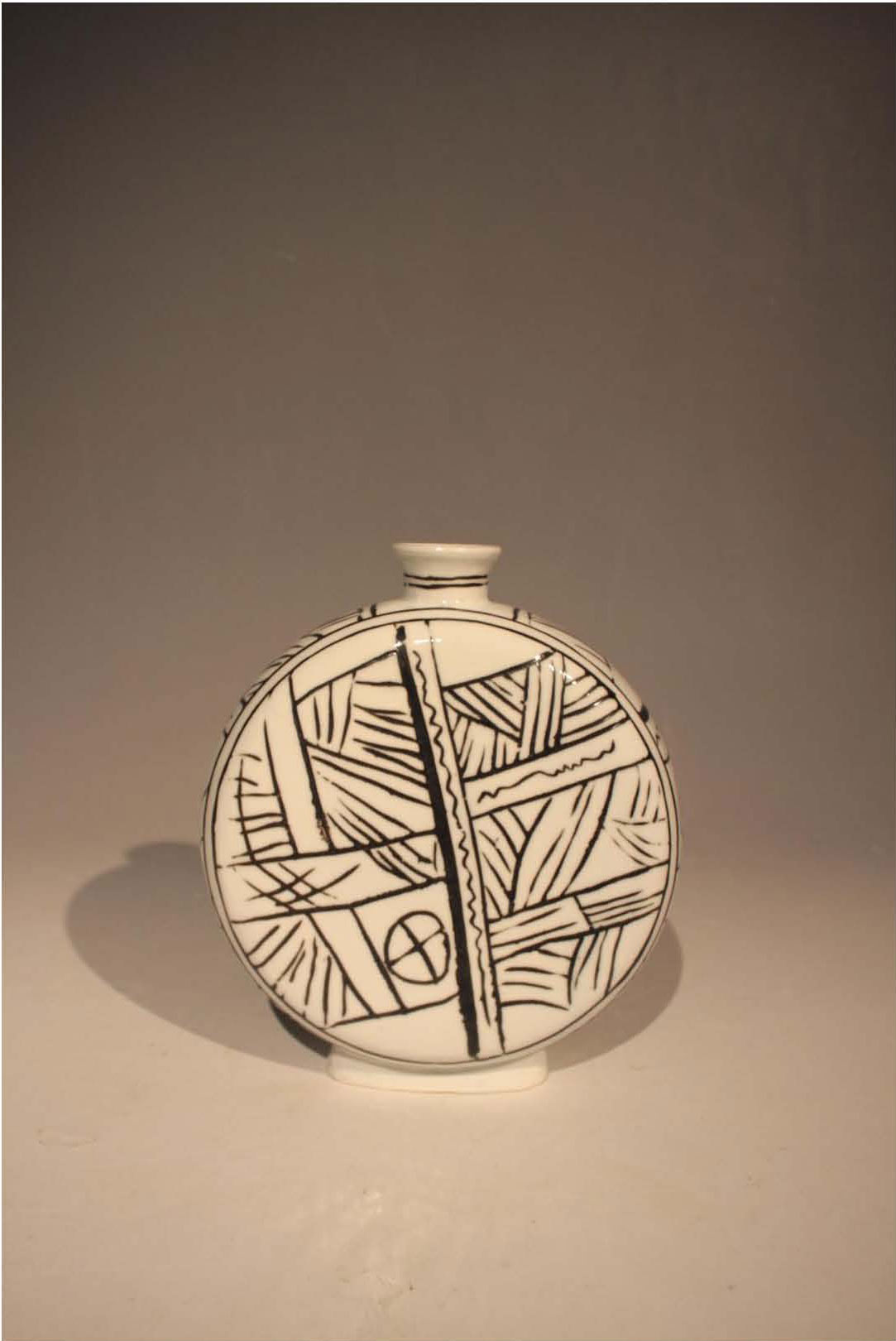 한용범 백자상감기하학문편병, 백자소지, 흑화장토 30만원