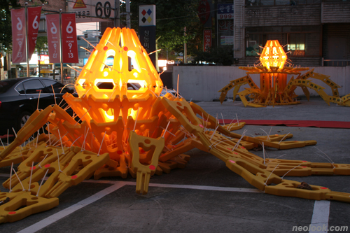 Secondly, the setting of this festival doesn't involve passive structure where usual exhibition's works are waiting for the audience to come and look. However, this festival around the Taehwa-riverside involves live interaction with Woolsan citizens that they can just view the works of the artists when they pass by the public places so that they can question themselves about their environmental surroundings.