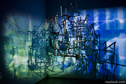 - 홍범_Hide & Seek II_2채널 비디오 프로젝션, 사운드, 쌍방향 거울, 구리관_가변크기_2011
