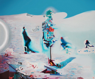 천눈이 작가는 존재 자체에 관한 스스로의 고찰을 통해 서사적 현실을 받아들인다. 자신의 개별적인 소우주를 느끼고 주관적인 대화를 하는 것은 작가의 존재의 근거이다. 그리고 응집된 서사는 강렬한 색감과 폭발적인 에너지로 표현된다. 표현된 서사는, 그 시작과 끝을 알 수 없는 현재진행형 시제로 끊임없이 분열된다. 작가가 말했듯이, 동기는 구체적일지언정, 존재의 근거는 재탄생된 메타포들로 알 수 없다. 수수께끼처럼 감춰진 존재를 찾아나서는 것도, 전시 관람의 좋은 방법일 것이다.