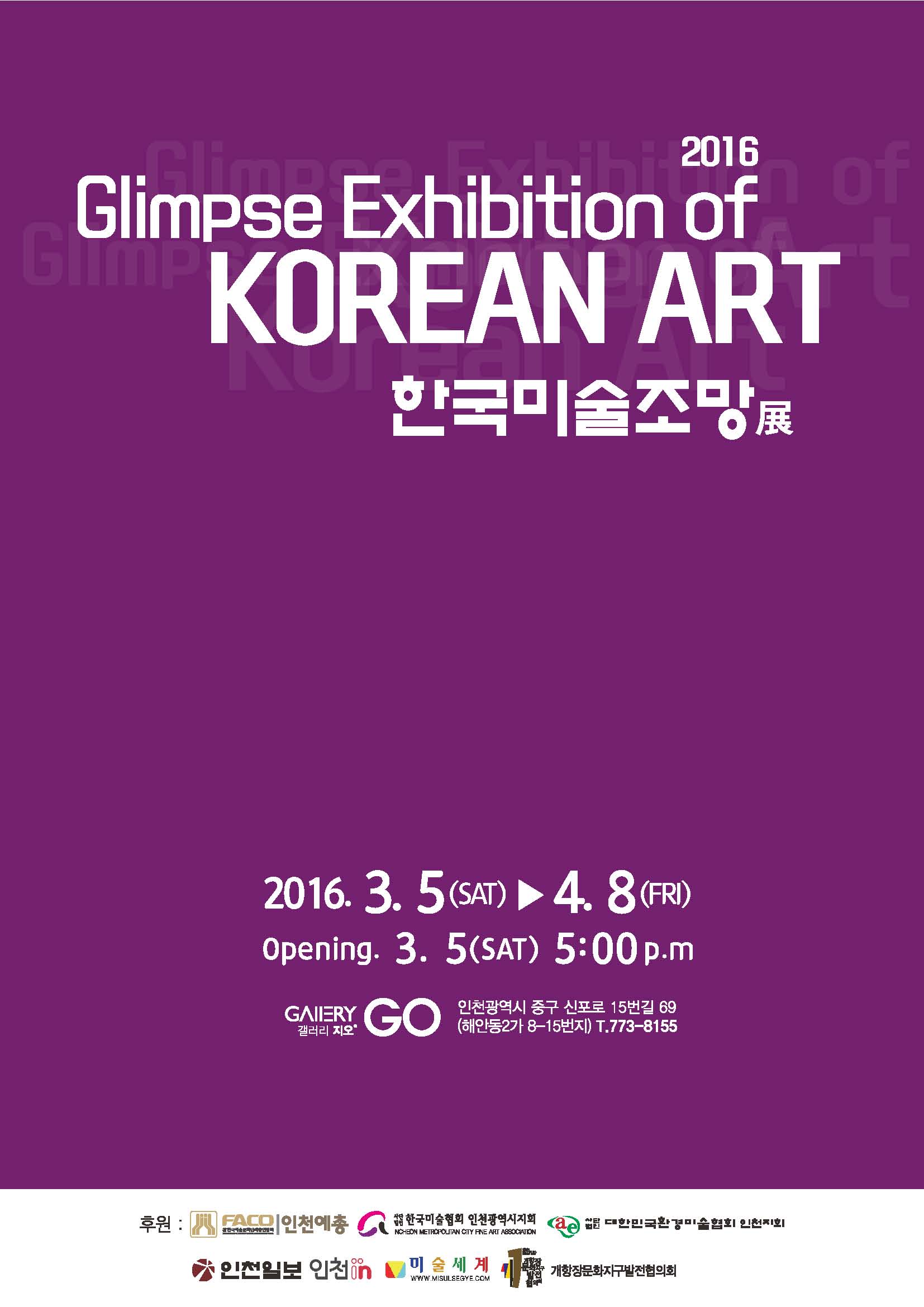 시간은 어느덧 꽃피는 3월이 되었습니다. 시간이 좀 더 흐르면 꽃 진 자리엔 신록이 무성하고 새 생명들이 꿈틀거릴 것입니다. 자연 그리고 생명은 그렇게 끊임없이 순환을 거듭합니다. 이 계절에 한국미술의 흐름을 한 눈에 볼 수 있는 2016 한국미술조망展을 기획하고 개최하게 되었습니다.