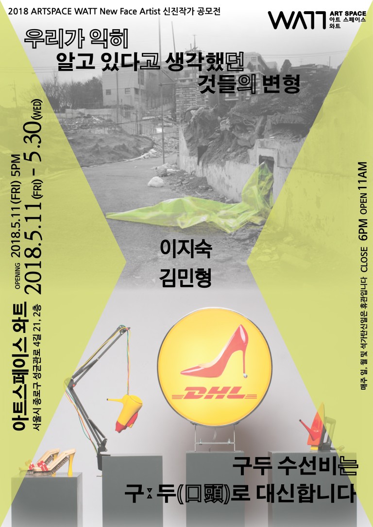 아트스페이스 와트에서는 오는 5월 11일부터 5월 30일까지「우리가 익히 알고 있다고 생각했던 것들의 변형」「구두 수선비는 구ː두(口頭)로 대신합니다」전이 개최됩니다.