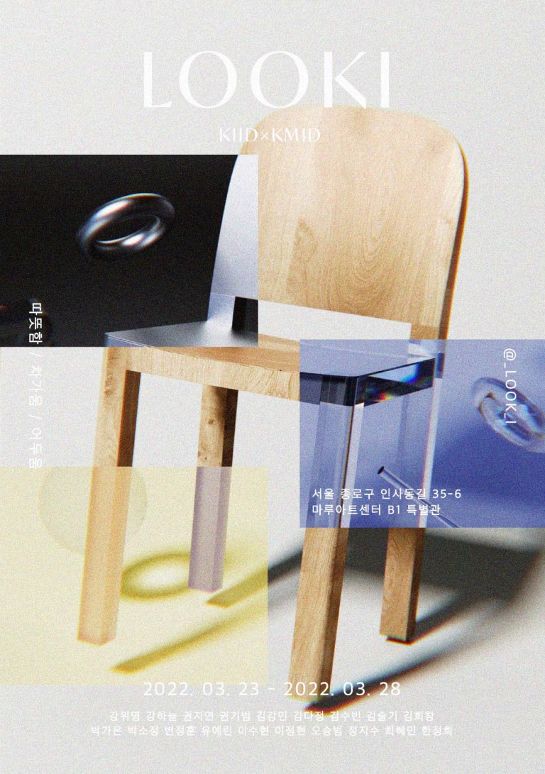 고려대, 국민대의 젊은 디자이너들의 포부와 아이디어를 담은 looki전은 전시의 통일성을 주면서 최대한 다양하고 '학생'다운 참신한 조형적 아이디어와 새로움을 보는 이에게 주기 위해, 차가운 공간, 따뜻한 공간, 그리고 암실, 3가지의 직관적인 디피 컨셉을 정했습니다.