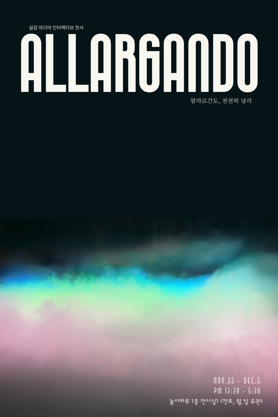 미래는 예상할 수 없고 불확실하다. 그럼에도 우리는 현재의 일상, 내 곁의 소중한 사람들에 기대어 알 수 없는 내일을 향해 발걸음을 옮긴다. 알라르간도(Allargando)는 우크라이나와 한국 청소년들의 목소리를 안갯속 빛의 프로젝션으로 시각화함으로써 불확실한 삶 속에서 희망과 꿈을 그리는 과정을 담아냈다.