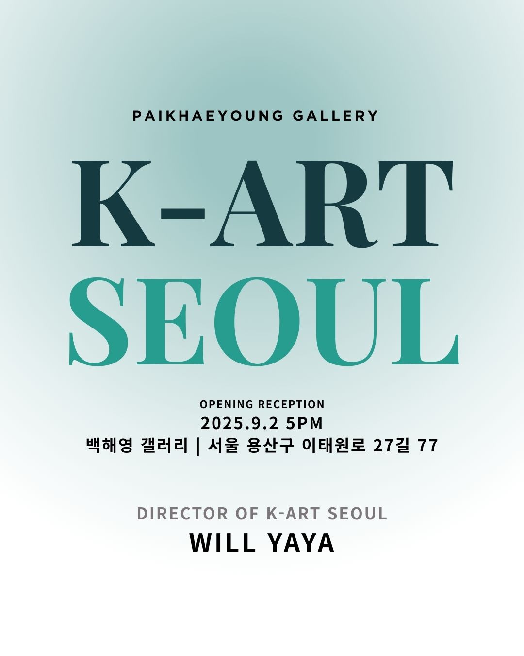 “K-Art Seoul 2025는 창의성과 문화적 대화가 만나는 장입니다. 각 작가는 고유한 목소리를 통해 집단적 담론을 만들어내며, 예술이 국경 없는 언어임을 다시금 일깨워줍니다.” –Will Yaya, K-Art Seoul 디렉터 백해영갤러리, 관훈갤러리, 더 트리니티갤러리, 갤러리 끼라는 무대를 통해, 이번 전시는 서울을 예술적 혁신과 교류의 글로벌 거점으로 자리매김합니다.